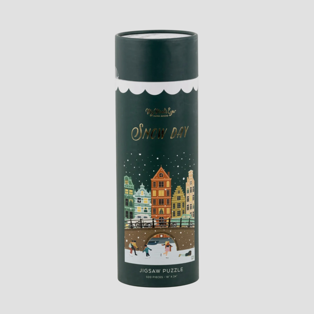 Get ready to skate into the holiday spirit with our Snow Day Winter Puzzle! Featuring a charming winter scene of skating on the canal, this puzzle is perfect for cozying up on a snowy day. Piece by piece, watch the scene come to life and bring joy to your winter days. Featured artwork from Melody